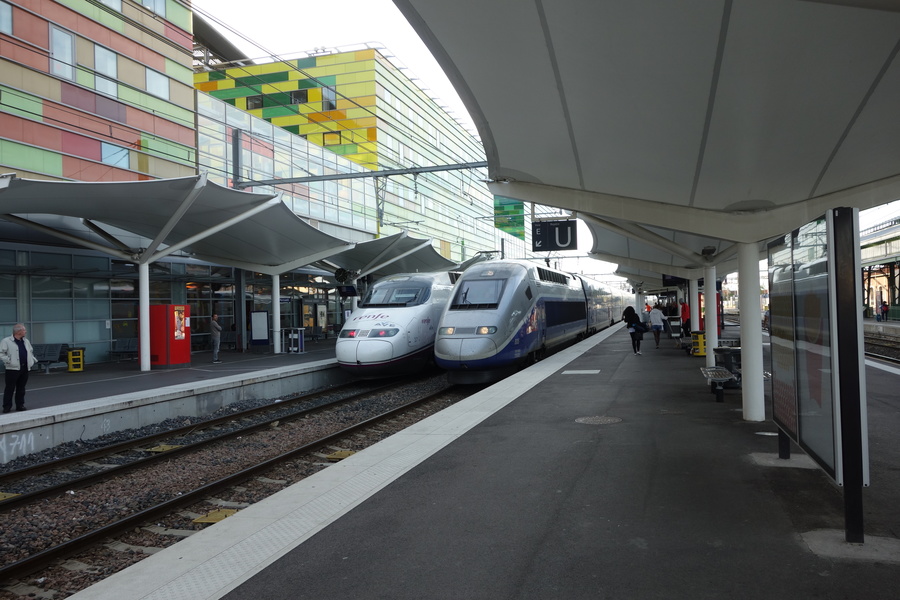 Nun gab es an Pfingstmontag irgendwelche Bauarbeiten zwischen Mannheim und Saarbrücken, sodass der direkte ICE nach Paris nicht fuhr, aber die Umstiege in Mannheim und Karlsruhe haben gut geklappt, sodass wir ohne Probleme bei Strasbourg im TGV über die Grenze nach Frankreich fahren konnten.